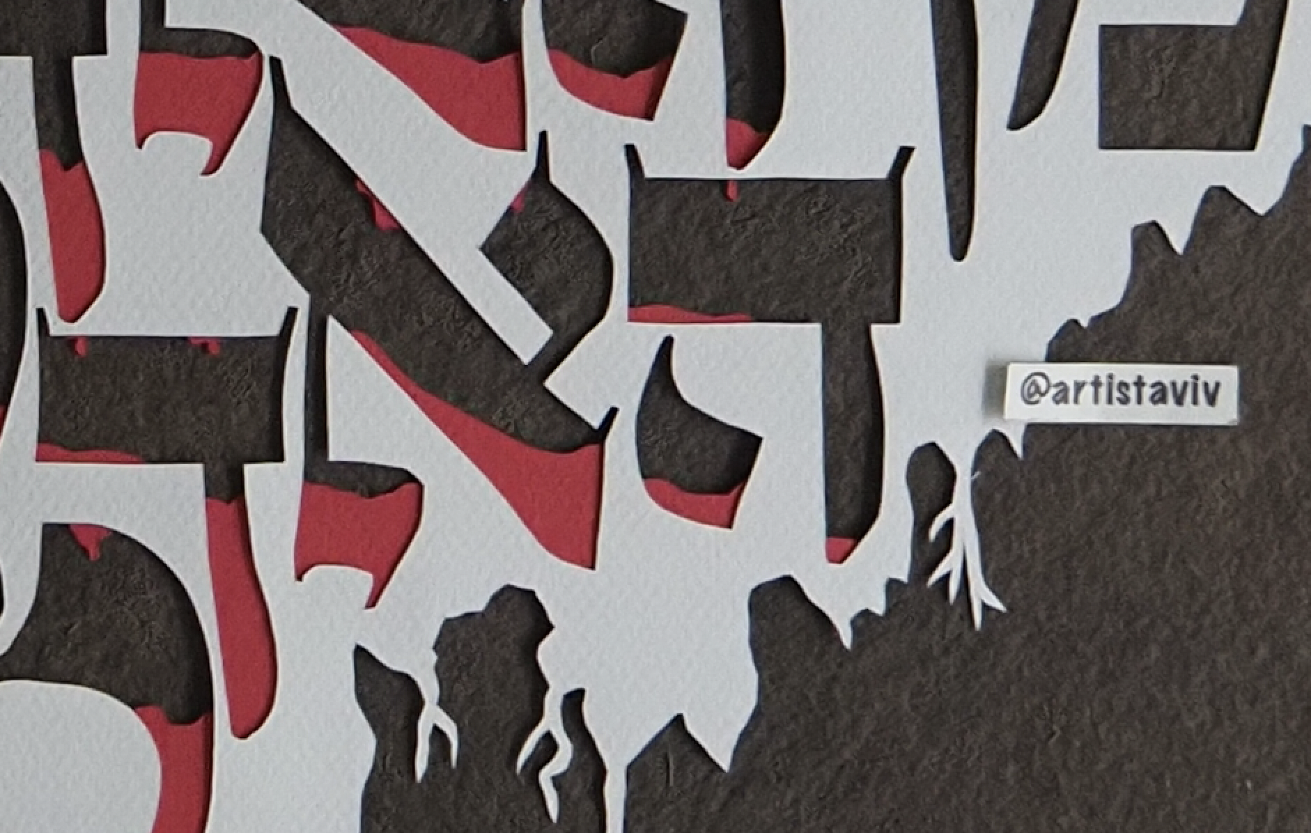 As I was creating this papercut, I was thinking about how God might react if God were talking to the leaders of Israel these days, as they have been spilling the blood of thousands of innocents for over a year in Gaza. I imagine God being just as upset, angry, and outraged as when Cain was discovered having killed his brother.